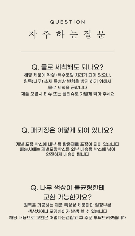 나무 제품이므로 물로 세척을 하지 말아주세요
